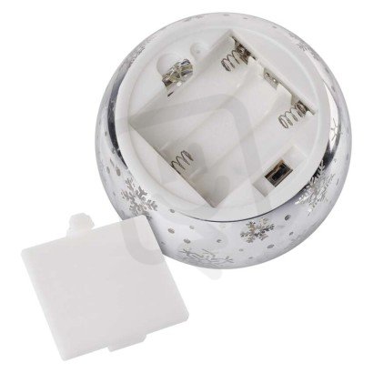 LED vánoční skleněná koule - vločky 12 cm 3x AA vnitřní teplá bílá časovač