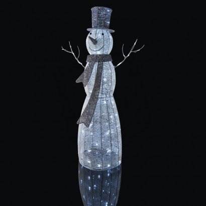 Vánoční LED sněhulák ratanový, 124cm, vnitřní, studená bílá,časovač