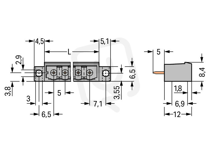 Konektor s pájecími piny THT, pájecí kontakt 1,0x1,0 mm, rovné, šedá 5pól.