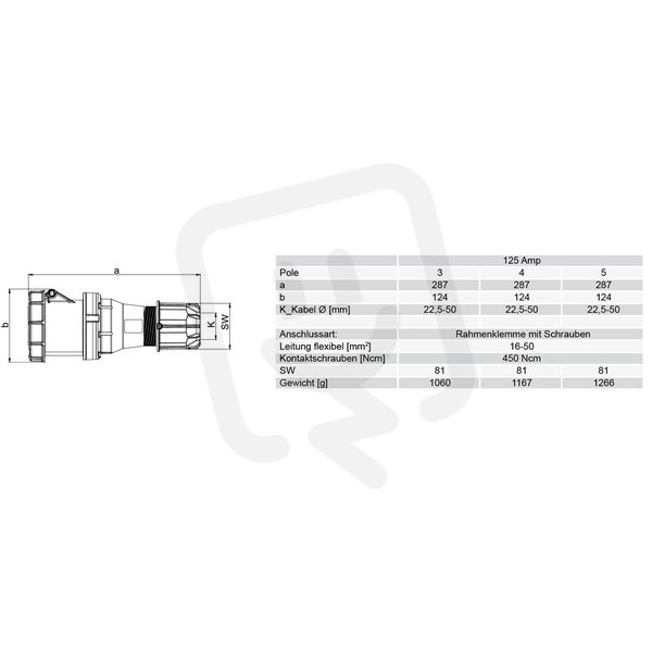 spojka 5P, 125A/400V, 6h, IP67 PCE 245-6
