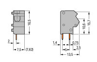 2vodičová řadová svorka na desky plošných spojů, 0,75 mm2, modrá 1pól.