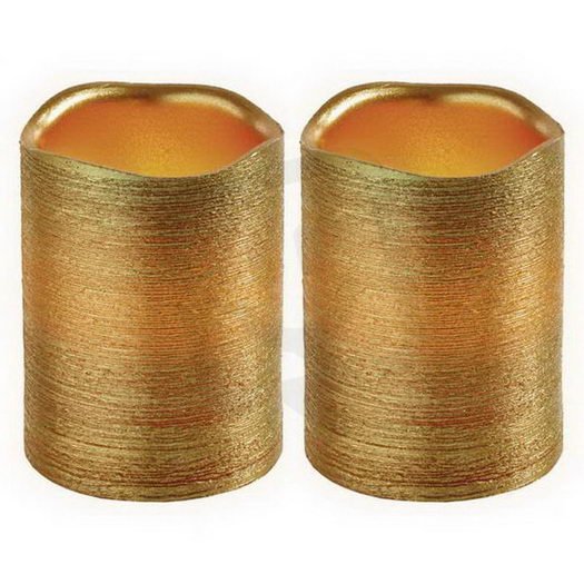 Svíčky LED, 5x10cm, metalické zlaté, 3x AAA, jantarová, 2 ks