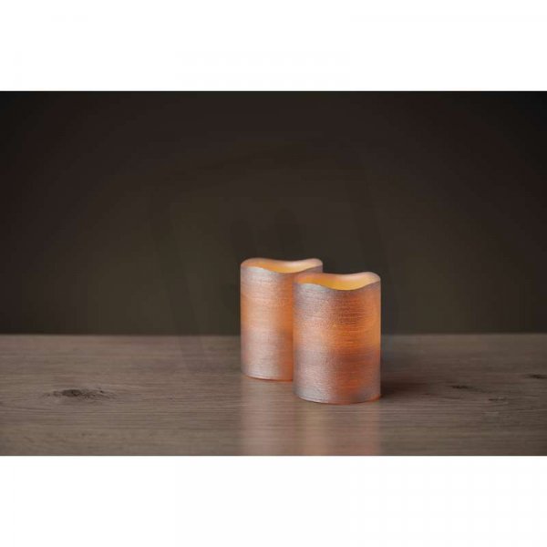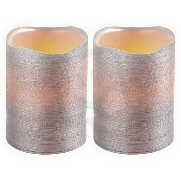 Svíčky LED, 5x10cm, metalické stříbrné, 3x AAA, 2 ks