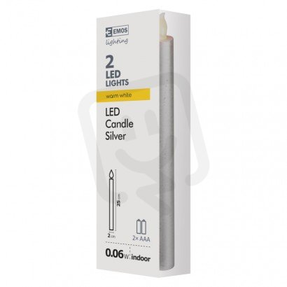 Svíčky LED, 25cm, metalické stříbrné, 2x AAA, jantarová EMOS ZY2271