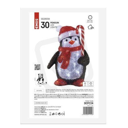 LED vánoční tučňák, 30,5 cm, venkovní i vnitřní, studená bílá EMOS DCFC24