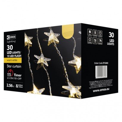 30LED STAR FLASH IP44 WW najdete v kategoriích Svítidla, Vánoční, dekorativní a párty osvětlení, Svítidla, světelné zdroje a LED osvětlení, výrobce Emos, EAN 8592920078693, kód dodavatele . Vánoční LED závěs - hvězdy, 120x90cm, vnitřní, teplá bílá, časovač nabízíme od 1 ks. Kód EMAS 30LED STAR FLASH IP44 WW je ELSVOS0805618.