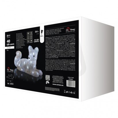 LED vánoční liška, 32cm, venkovní, studená bílá, s časovačem Emos