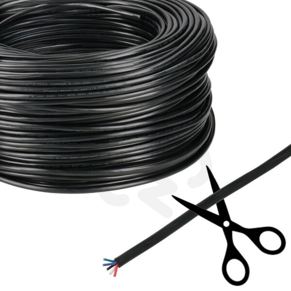 5-žilový kulatý kabel s vodiči AWG 22, černý plášť, uvnitř červená/zelená/modrá/černá/bílá. Kabel obsahuje pět měděných vodičů o průřezu 0,34 mm2. Vnější průměr kabelu: 5,5mm. Používá se k připojování a propojování RGBW LED pásků. Při zapojení volte maximální délku a vhodný průřez vodiče vždy s ohledem na přípustný úbytek napětí, který na vodiči vzniká průchodem proudu. Základní balení 100m, prodej na míru.