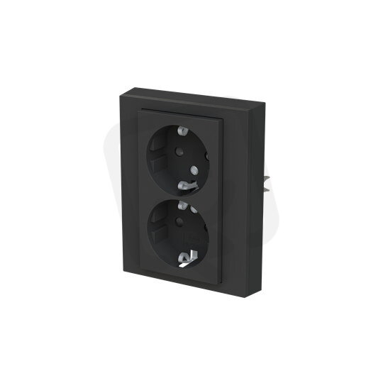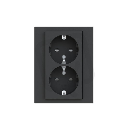 Zásuvka dvojnásobná s bočními kontakty, s clonkami, bezšroub. svorky; onyx/kouřová černá