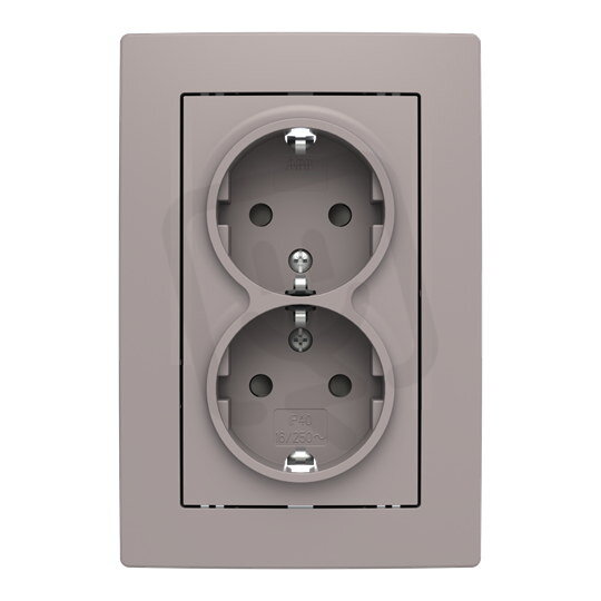 Zásuvka dvojnásobná s bočními kontakty, s clonkami, bezšroubové svorky; Zoni®; greige / bílá