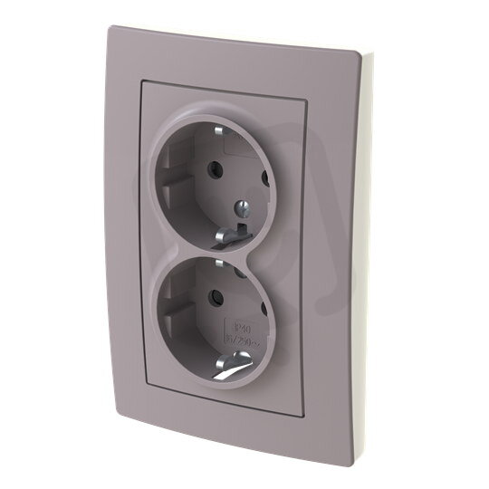 Dvojzásuvka ABB ZONI s clonkami, bezšroub., greige / bílá 5522T-C03458 144
