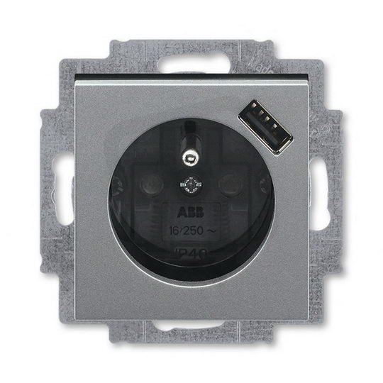 Zásuvka s USB nabíjením 5569H-A02357 69 ocelová/kouř. černá Levit ABB