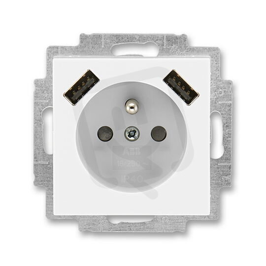 ABB Levit Zásuvka s kolíkem s clonkami s nabíjením 2x USB bílá/ledová bílá