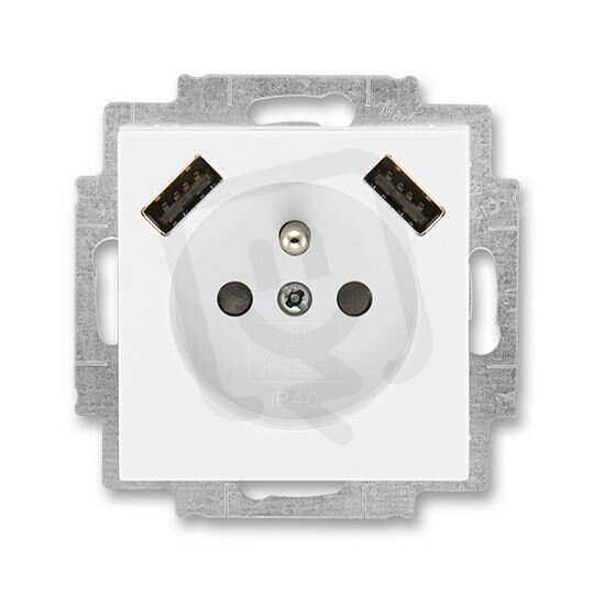 ABB Levit Zásuvka 1násobná s kolíkem s clonkami s nabíjením 2x USB bílá/bílá