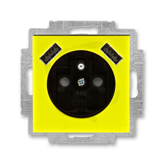 ABB Levit Zásuvka s kolíkem s clonkami s nabíjením 2x USB žlutá/kouřová černá