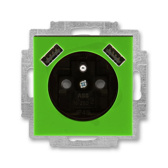 ABB Levit Zásuvka s kolíkem s clonkami s nabíjením 2x USB zelená/kouř. černá