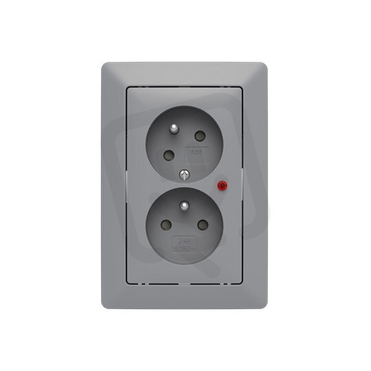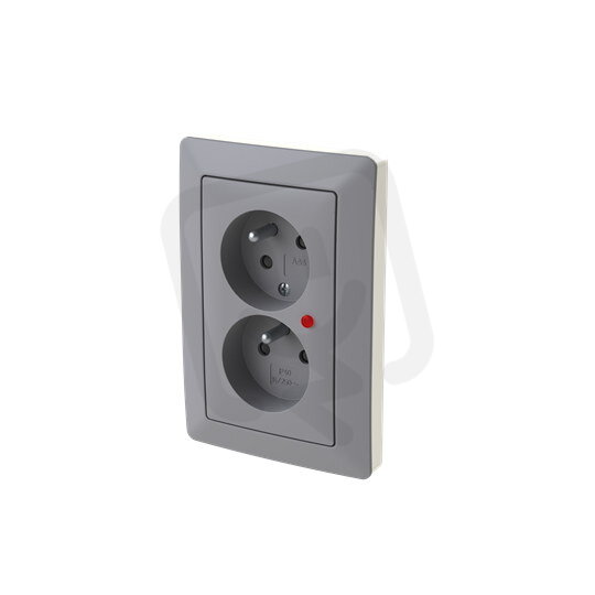 Zásuvka dvojnásobná, s clonkami, s natočenou dutinou, s ochranou před přepětím; Zoni®, šedá / bílá