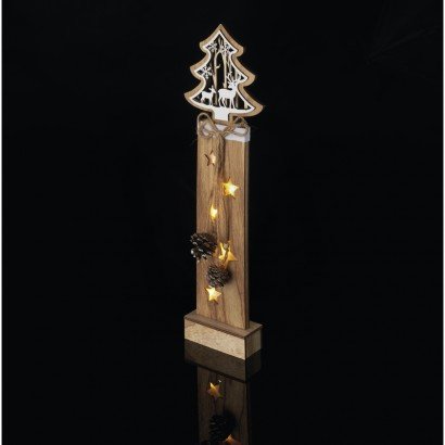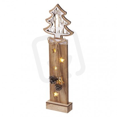 LED vánoční strom dřevěný, 48cm, 2× AA, teplá bílá, s časovačem Emos