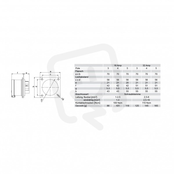 PCE 624-7 624-7 přívodka vestavná 4P, 32A /