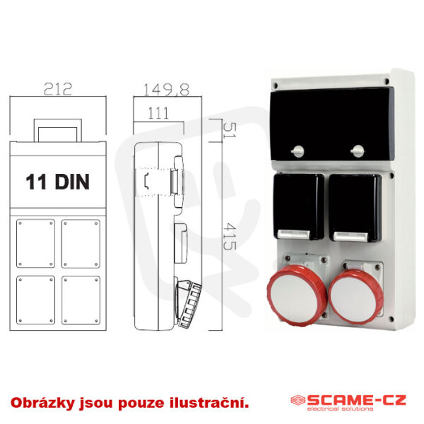 Zásuvková rozvodnice nejištěná 636 2x32A/4p, 2x16A/4p SCAME 636.3311/4
