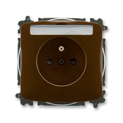 Zásuvka jednonásobná s ochranným kolíkem, s clonkami, s popisovým polem (typ 6619); hnědá