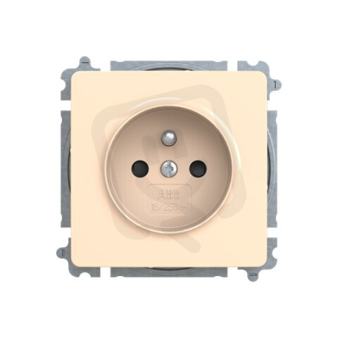 Zásuvka jednonásobná s ochranným kolíkem, s clonkami (typ 6619); krémová
