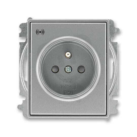 Zásuvka s přepěťovou ochranou s clonkami akustická ocelová ABB 6689E-A06357 36