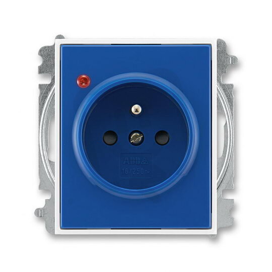 Zásuvka s přepěťovou ochranou, s clonkami, s optickou signalizací poruchy (typ 6619); modrá / bílá