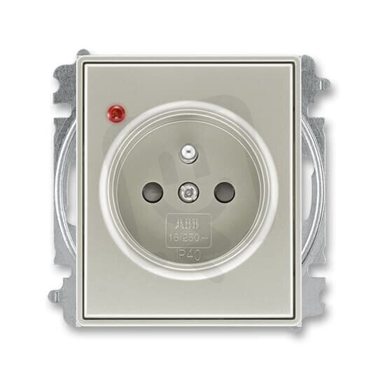 Zásuvka s přepěťovou ochranou, s clonkami, s optickou signalizací poruchy (typ 6619); starostříbrná