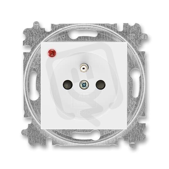 Zásuvka s přepěťovou ochranou, s clonkami, s optickou signalizací poruchy (typ 6619); bílá / bílá
