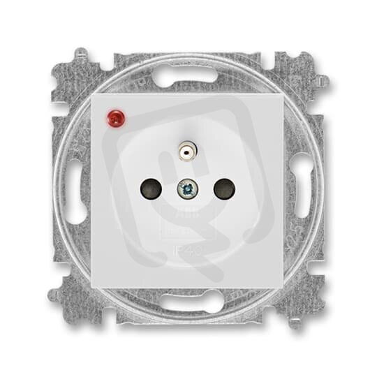 Zásuvka s přepěťovou ochranou, s clonkami, s optickou signalizací poruchy (typ 6619); šedá / bílá