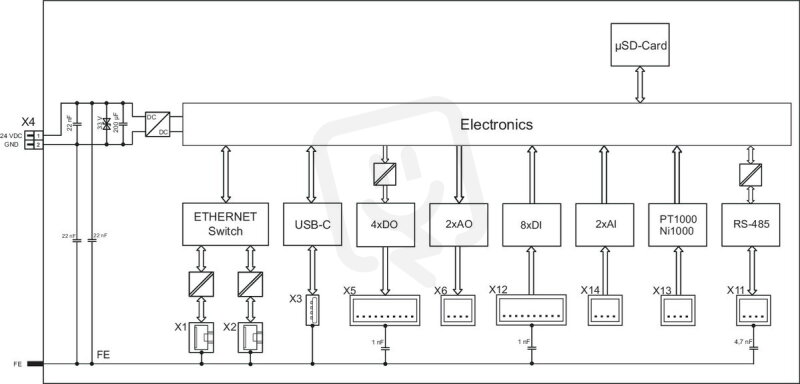 Řídicí systém Compact 100, 8DI 4DO 2AI 2AO 2NI1K/PT1K 1RS485, 2x Ethernet