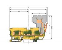 Základní svorka PE-2 vodiče/2piny, 4mm2, na DIN lištu, zeleno-žlutá