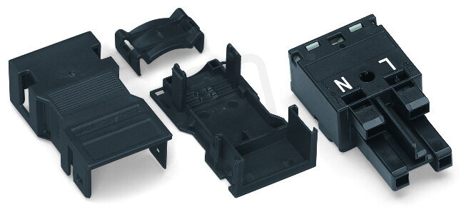 Zdířka S pouzdrem s odlehčením tahu 2pól. černá WAGO 770-102/041-000