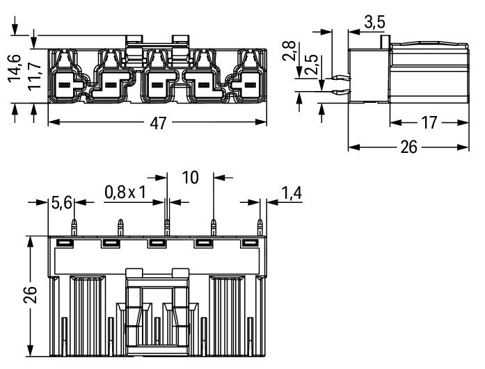770-855/064-000 Konektor na desky plošný najdete v kategoriích Průmyslové zásuvky a vidlice, Průmyslové konektory, Vypínače, spínače, zásuvky a příslušenství, Pro desky s plošnými spoji, EAN 4050821553823, kód dodavatele 770-855/064-000. Konektor na desky plošných spojů rovné provedení 5pól. šedá WAGO 770-855/064-000 nabízíme od 50 ks. Kód EMAS 770-855/064-000 Konektor na desky plošný je ELOSOS1536169.