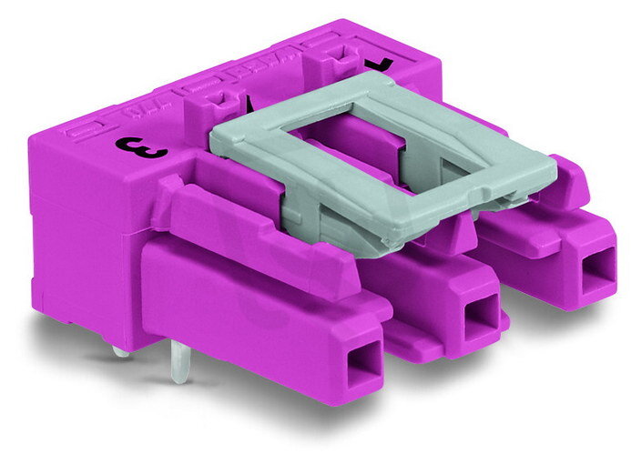 Zásuvka na desky plošných spojů, úhlové, 3pól., Růžová