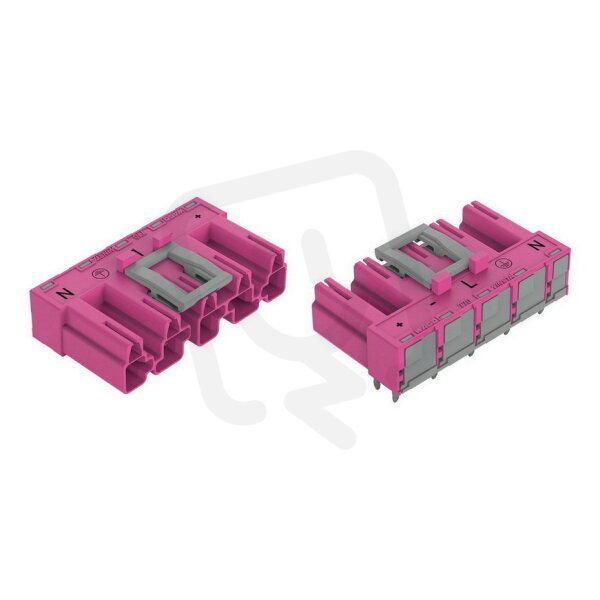 Konektor na desky plošných spojů, úhlové, 5pól., Růžová