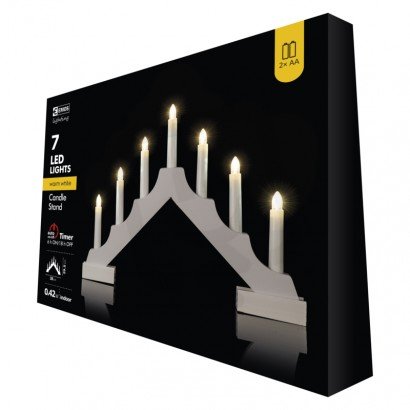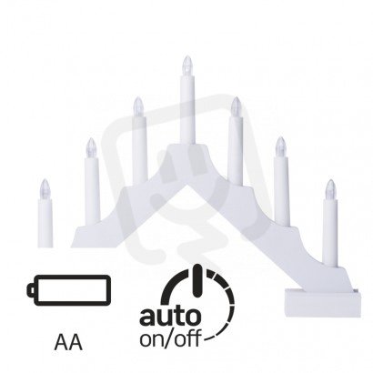 LED vánoční svícen bílý, 2xAA, teplá bílá, časovač