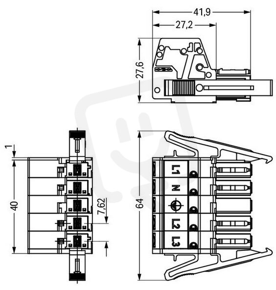 Zdířka S pouzdrem s odlehčením tahu 5pól. bílá WAGO 831-3105/1019-050