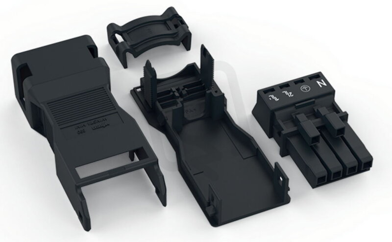Zdířka S pouzdrem s odlehčením tahu 4pól. černá WAGO 890-104
