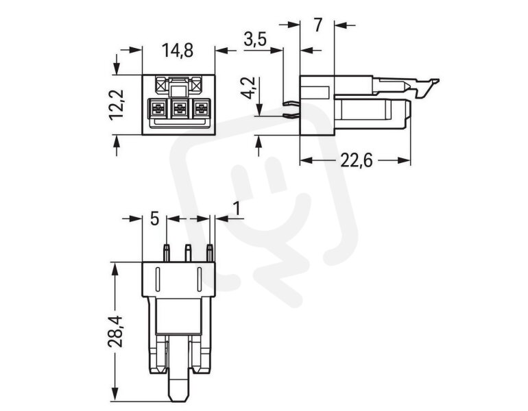 Zásuvka na desky plošných spojů rovné provedení 3pól. šedá WAGO 890-843