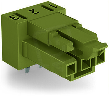 Zásuvka na desky plošných spojů, úhlové, 3pól., světle zelená