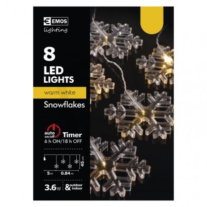 LED vánoční závěs vločky, 80cm, venkovní, teplá bílá, s časovačem Emos