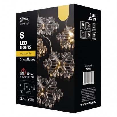 8LED ACRYLIC SNOWFLAKE WW najdete v kategoriích Svítidla, Vánoční, dekorativní a párty osvětlení, Svítidla, světelné zdroje a LED osvětlení, výrobce Emos, EAN 8592920077283, kód dodavatele . LED vánoční závěs vločky, 80cm, venkovní, teplá bílá, s časovačem Emos nabízíme od 1 ks. Kód EMAS 8LED ACRYLIC SNOWFLAKE WW je ELSVOS0805620.