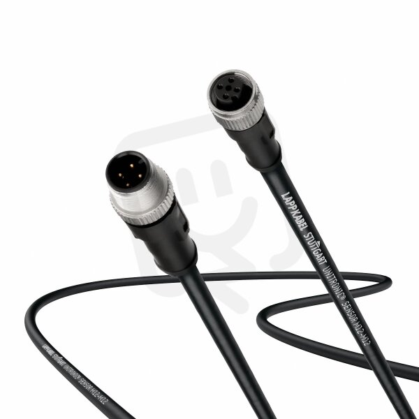 Kabel disponuje konektory M12MS a M12FS, pláštěm z materiálu PUR a délkou 5,0 m, vhodný pro průmyslové aplikace.