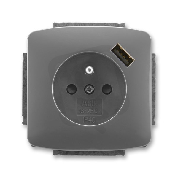 Zásuvka s kolíkem s clonkami s USB nabíjením 5569A-A02357 S2 kouřová Tango ABB