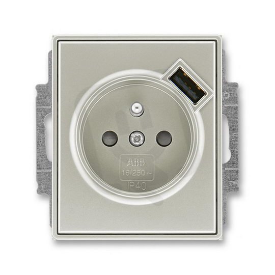 Zásuvka s clonkami s USB nabíjením 5569E-A02357 32 starostříbrná Time ABB