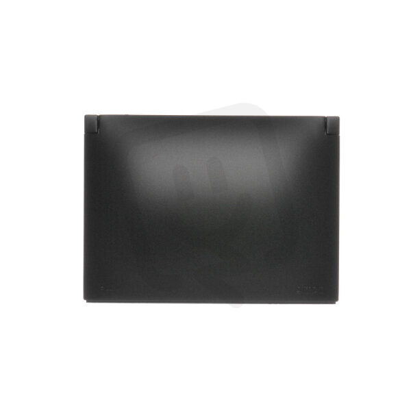 Dvojitá zásuvka s uzemněním, Schuko - uzávěry proudových cest, IP44 - klapka v barvě krytu černá matná