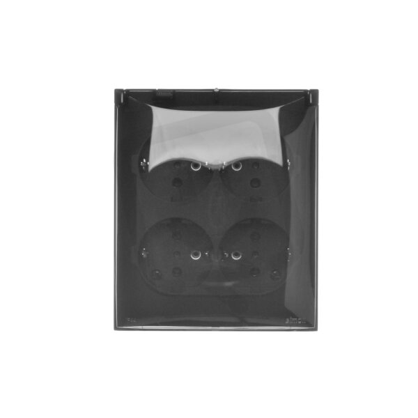 Čtyřzásuvka s uzemněním, typ Schuko - verze IP44 - průhledný kryt černá matná