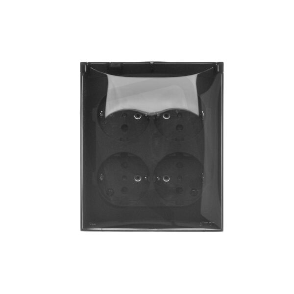 Čtyřzásuvka s uzemněním, typ Schuko - verze IP44 - průhledný kryt černá matná